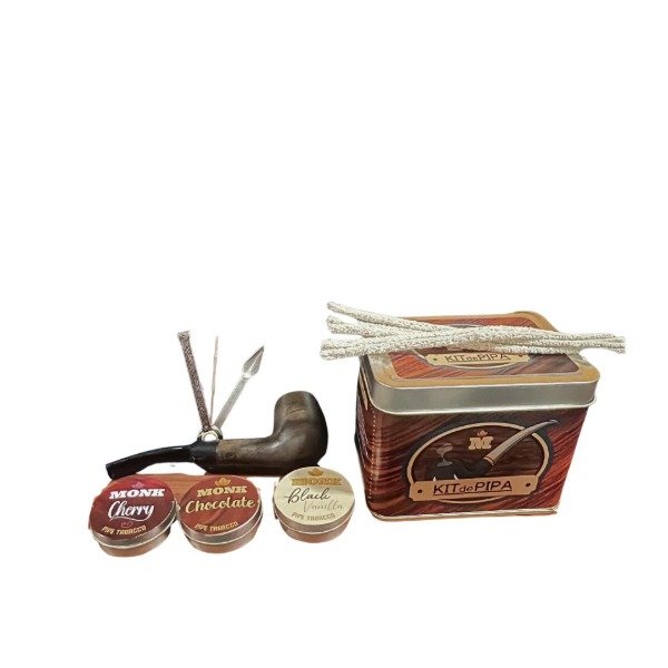 Incluye pipa, trío, escobillas, 3 latas de 15grs de tabaco de pipa aromaticas y lata de metal para guardado.